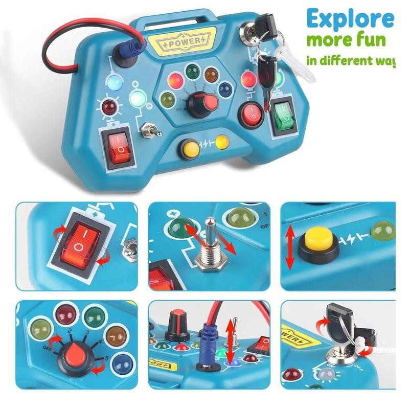 Montessori Busy Board with 8 LED Light Switch, Sensory Light Switch Travel Toy, Learning Toy Gift, Gifts for Kids, Play, Toddler Busy Board, Learning Materials, Preschool Busy Board, Sensory Activity Board