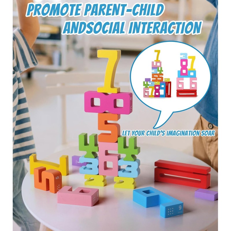 Montessori-Inspired Wooden Number Building Blocks-Wooden Number Blocks for 3+ Years Old Kids,Balance Competition Toy – Unlock Your Child’S Potential (Boxed Version)
