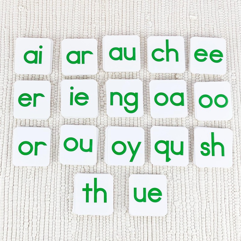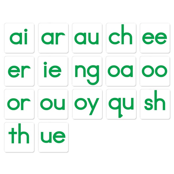 - Includes 10 of each of 17 phonograms (ai as in paint, ar as in yarn, au as in Paul, ch as in chip, ee as in tree, er as in fern, ie as in pie, ng as in king, oa as in boat, oo as in book, or as in corn, ou as in cloud, oy as in boy, qu as in quick, sh as in ship, th as in moth, ue as in blue)