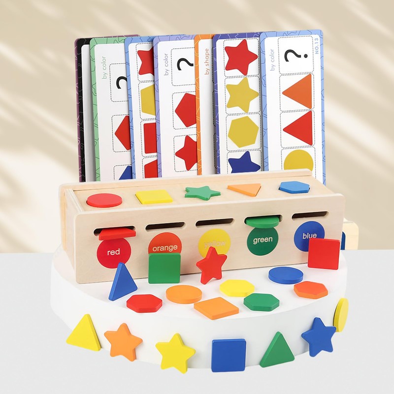 - Montessori Classification Toy: Set includes: 1 wooden box, 25 shaped blocks, 11 answer cards + 1 free card. An ergonomic educational toy set that supports your child's growth. Encourages children to play with this fun and peace of mind