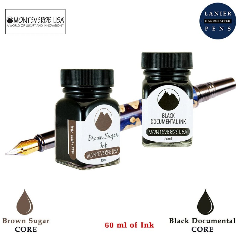 - Monteverde 60ml Core Fountain Pen Ink Bottle (30ml Brown Sugar Ink Bottle G309BS, 30ml Black Documental Ink Bottle G309DB)