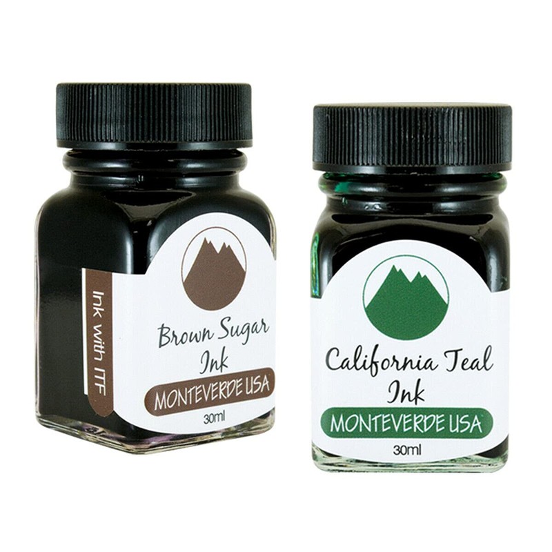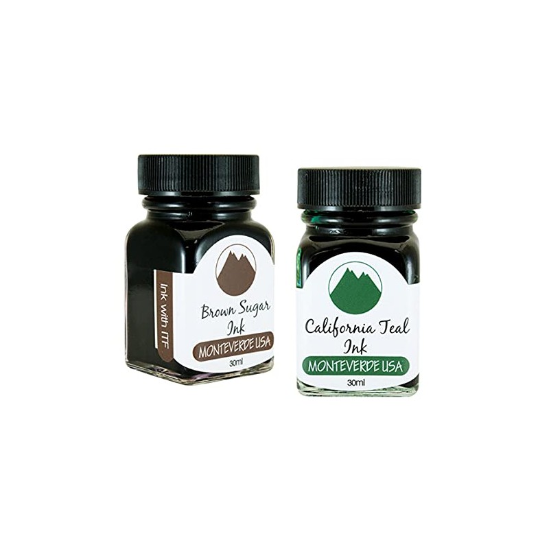 - Pack Contains the following Monteverde USA Ink Bottles: (1) Monteverde 30ml Brown Sugar Ink Bottle. (1) Monteverde 30ml California Teal Ink Bottle.