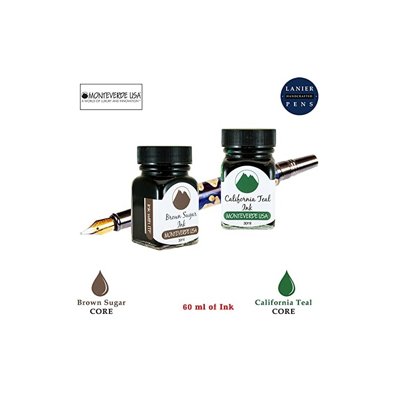 - Monteverde 60ml Core Fountain Pen Ink Bottle (30ml Brown Sugar Ink Bottle G309BS, 30ml California Teal Ink Bottle G309CT)