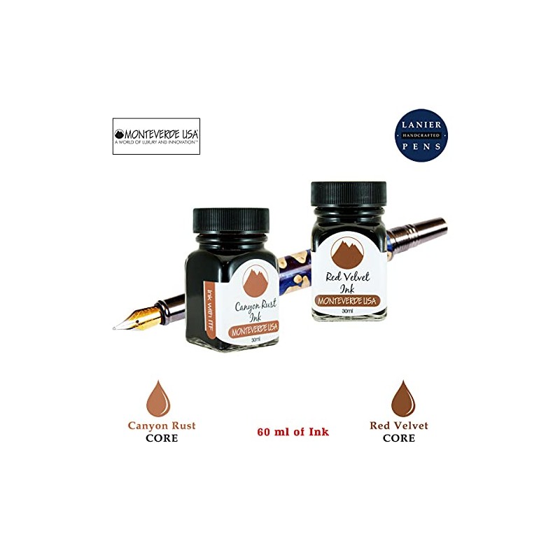 - Monteverde 60ml Core Fountain Pen Ink Bottle (30ml Canyon Rust Ink Bottle G309CP, 30ml Red Velvet Ink Bottle G309RV)