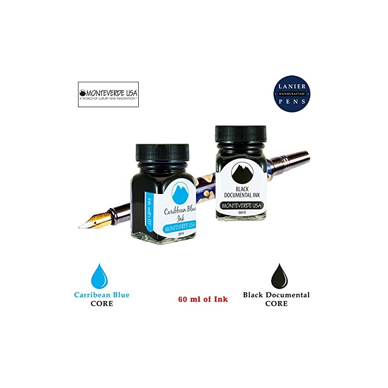 - Monteverde 60ml Core Fountain Pen Ink Bottle (30ml Caribbean Blue Ink Bottle G309CU, 30ml Black Documental Ink Bottle G309DB)