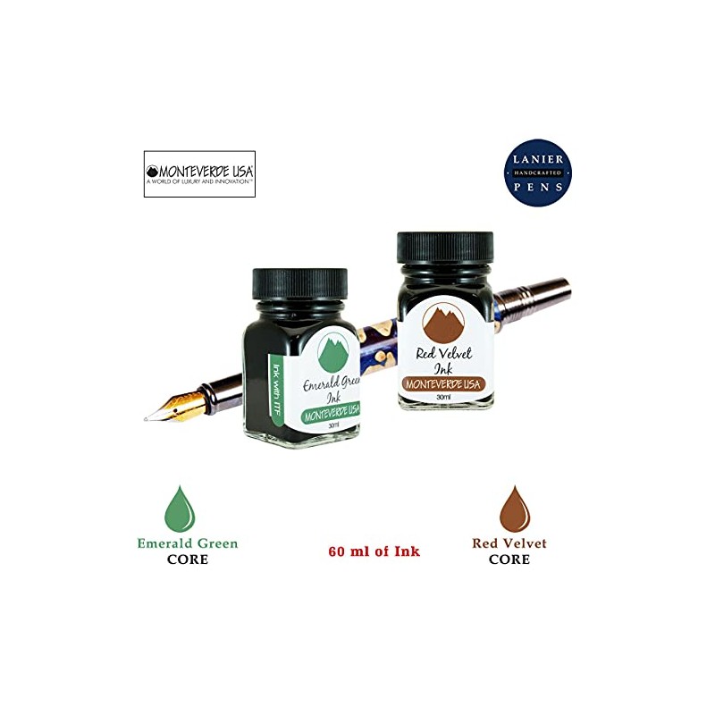 - Monteverde 60ml Core Fountain Pen Ink Bottle (30ml Emerald Green Ink Bottle G309EG, 30ml Red Velvet Ink Bottle G309RV)