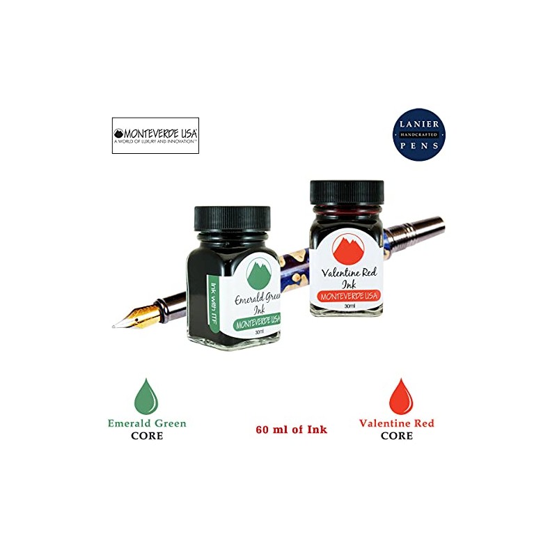 - Monteverde 60ml Core Fountain Pen Ink Bottle (30ml Emerald Green Ink Bottle G309EG, 30ml Valentine Red Ink Bottle G309VR)