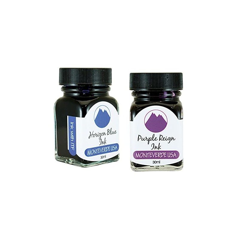 - Pack Contains the following Monteverde USA Ink Bottles: (1) Monteverde 30ml Horizon Blue Ink Bottle. (1) Monteverde 30ml Purple Reign Ink Bottle.
