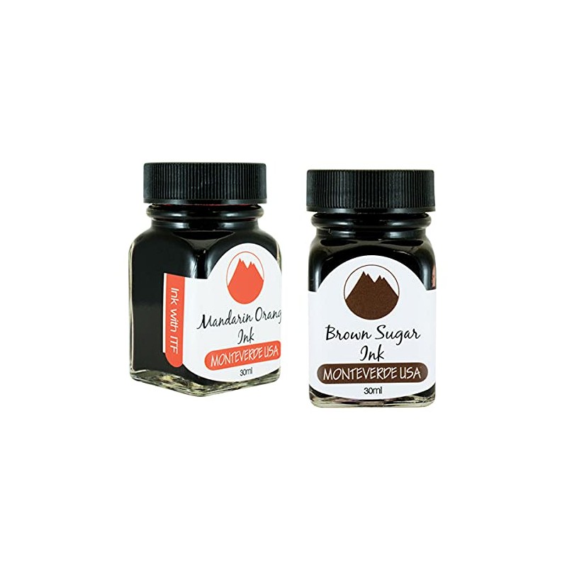 - Pack Contains the following Monteverde USA Ink Bottles: (1) Monteverde 30ml Mandarin Orange Ink Bottle. (1) Monteverde 30ml Brown Sugar Ink Bottle.