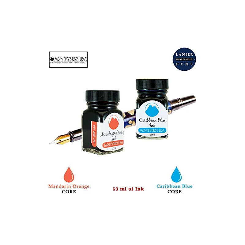 - Monteverde 60ml Core Fountain Pen Ink Bottle (30ml Mandarin Orange Ink Bottle G309MO, 30ml Caribbean Blue Ink Bottle G309CU)