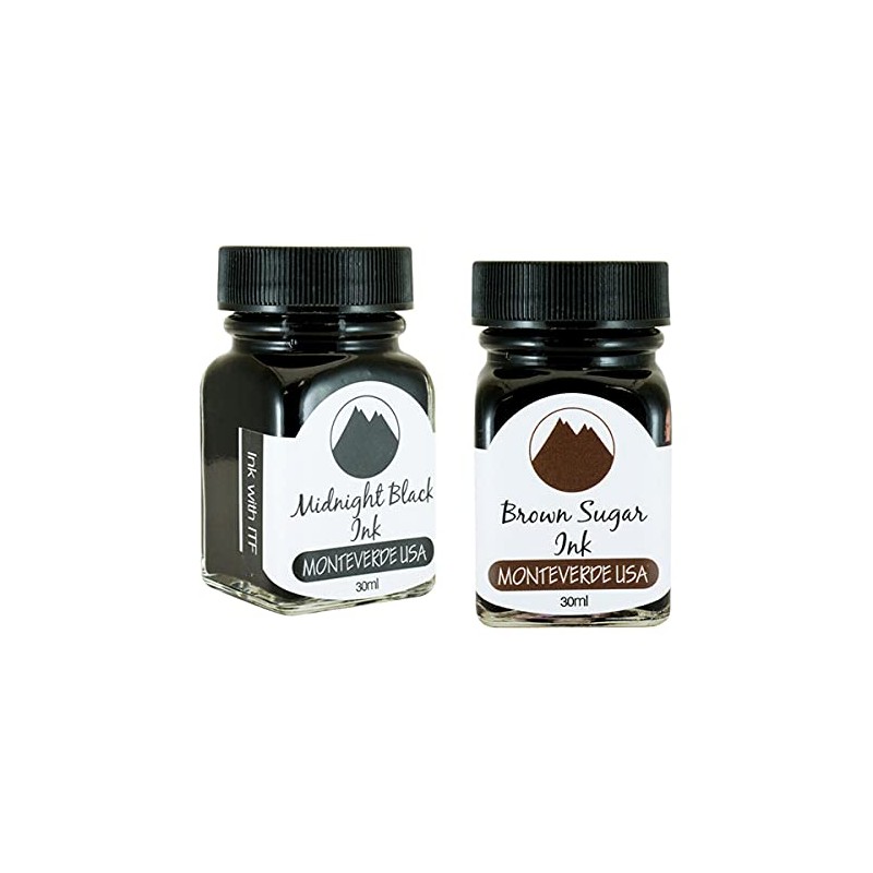 - Pack Contains the following Monteverde USA Ink Bottles: (1) Monteverde 30ml Midnight Black Ink Bottle. (1) Monteverde 30ml Brown Sugar Ink Bottle.
