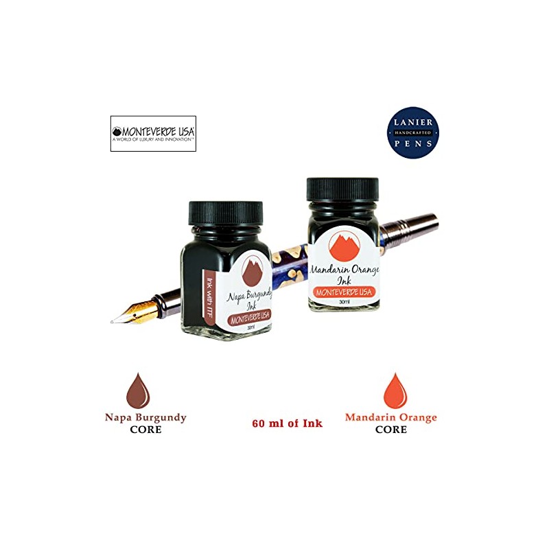 - Monteverde 60ml Core Fountain Pen Ink Bottle (30ml Napa Burgundy Ink Bottle G309NB, 30ml Mandarin Orange Ink Bottle G309MO)