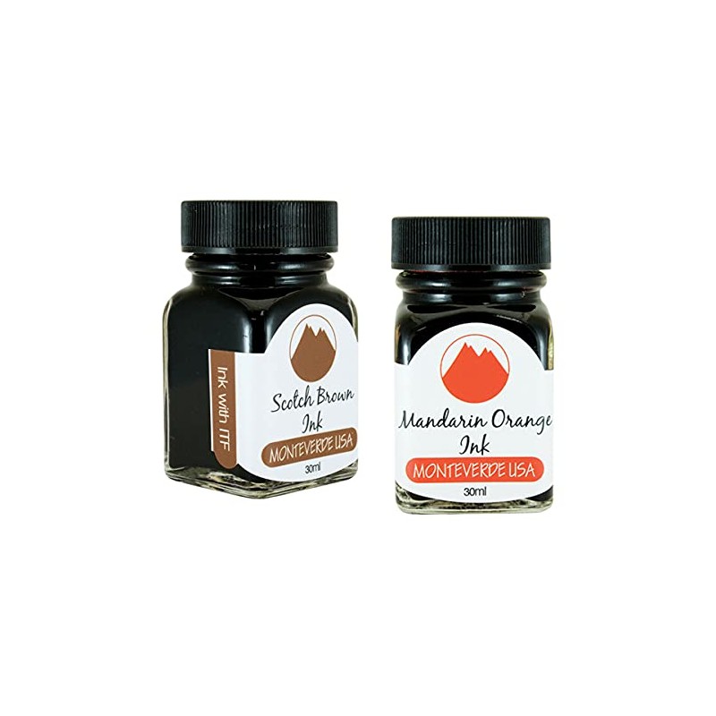 - Pack Contains the following Monteverde USA Ink Bottles: (1) Monteverde 30ml Scotch Brown Ink Bottle. (1) Monteverde 30ml Mandarin Orange Ink Bottle.