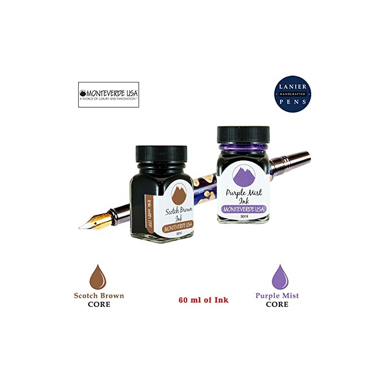 - Monteverde 60ml Core Fountain Pen Ink Bottle (30ml Scotch Brown Ink Bottle G309SB, 30ml Purple Mist Ink Bottle G309PM)