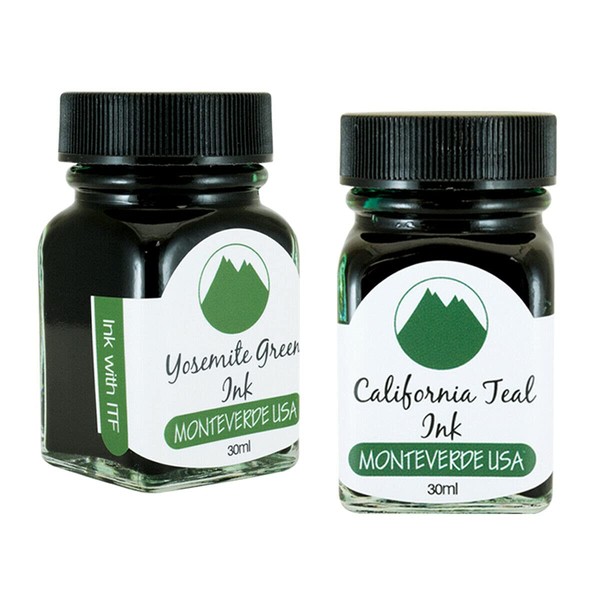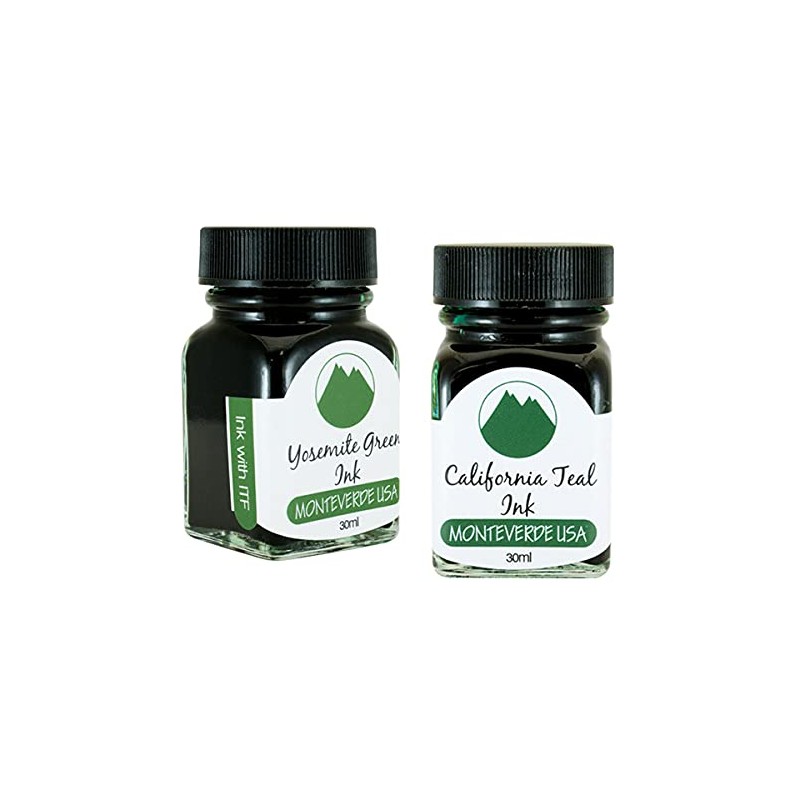 - Pack Contains the following Monteverde USA Ink Bottles: (1) Monteverde 30ml Yosemite Green Ink Bottle. (1) Monteverde 30ml California Teal Ink Bottle.