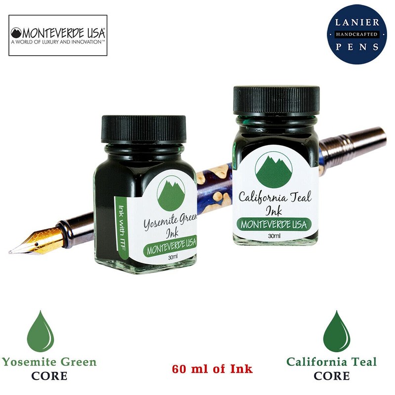 - Monteverde 60ml Core Fountain Pen Ink Bottle (30ml Yosemite Green Ink Bottle G309YG, 30ml California Teal Ink Bottle G309CT)