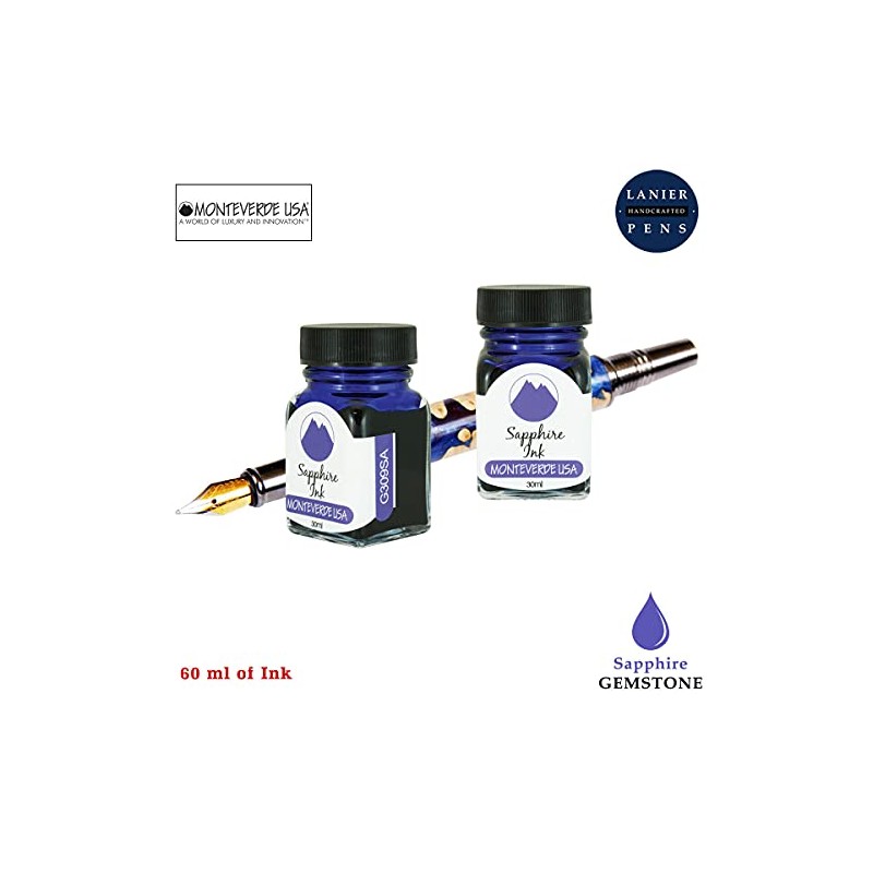 • Pack Contains the following Monteverde USA Ink Bottles: (2) Monteverde 30ml Sapphire Ink Bottle. The worlds latest leading European ink treatment formula (itf). Improved ink-flow quality and extends cap-off time. Lubricates and protects ink feeding systems from corrosion and clogging.