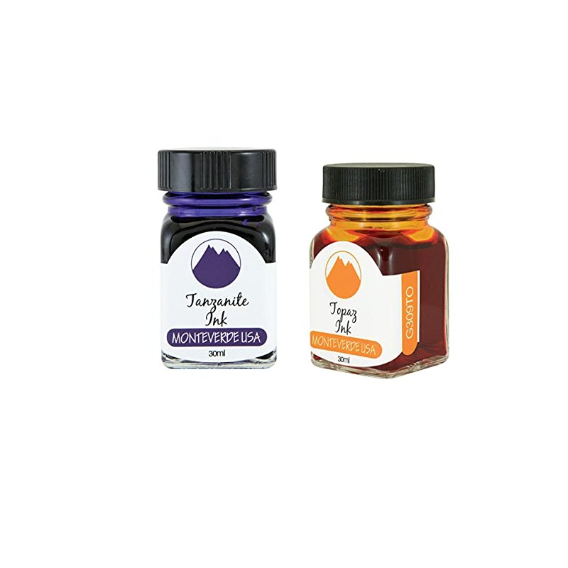 - Pack Contains the following Monteverde USA Ink Bottles: (1) Monteverde 30ml Topaz Ink Bottle. (1) Monteverde 30ml Tanzanite Ink Bottle. The worlds latest leading European ink treatment formula (itf). Improved ink-flow quality and extends cap-off time. Lubricates and protects ink feeding systems from corrosion and clogging.