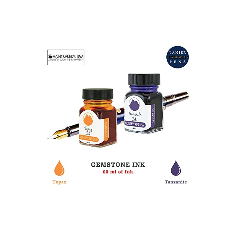 - Monteverde 60ml Gemstone Fountain Pen Ink Bottle (30ml Topaz Ink Bottle G309TO, 30ml Tanzanite Ink Bottle G309TA)