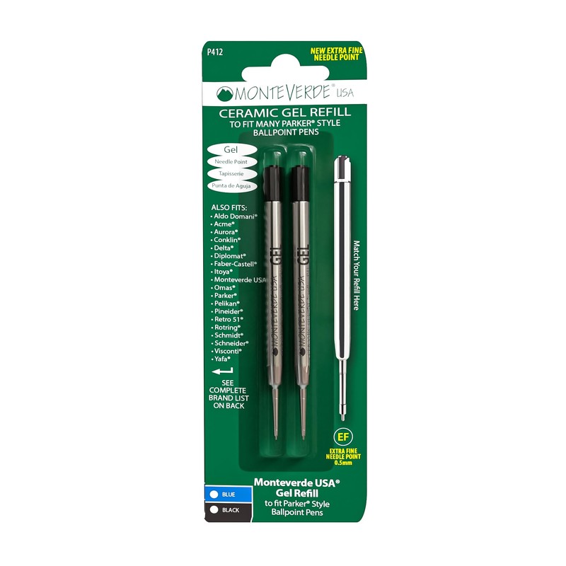 Monteverde Capless Gel Refill (to fit Parker), 0.5 mm Extra Fine Needle Point, Black