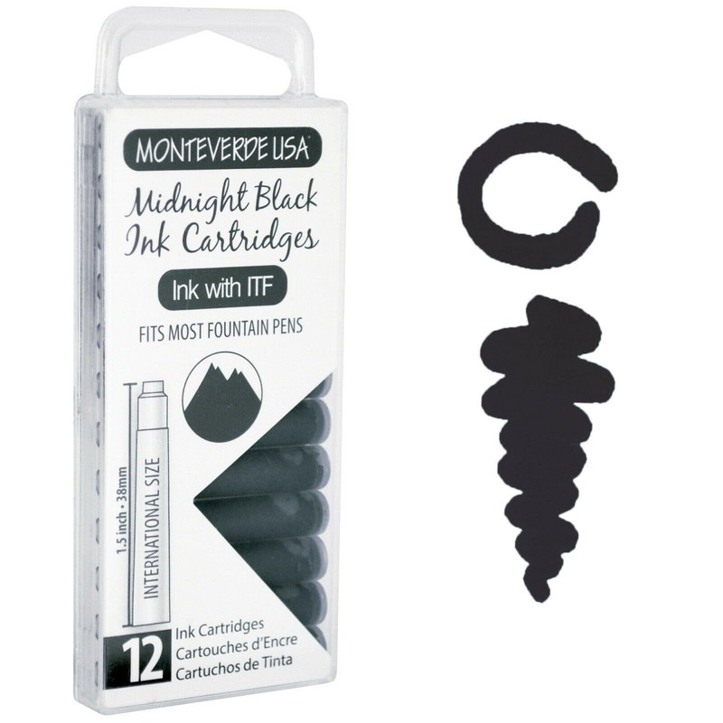 - The success of their expanded Itf and Gemstone ink collection, Monteverdi USA announce their new 12 piece ink cartridge sets. Which is now available in 31 brilliant Fountain Pen ink colors. Each set of cartridges are standard international size and are individually packaged in a thin, hangable and reusable plastic container.