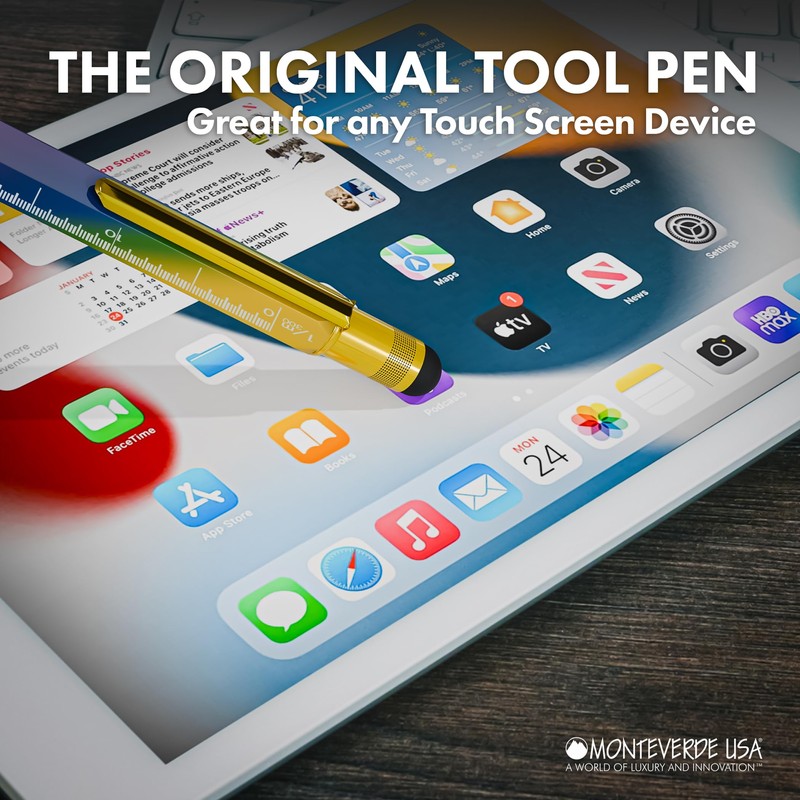 MONTEVERDE USA 9-in-1 Tool Ballpoint Pen in Rainbow – PVD-Coated Multifunctional Pen with Stylus, Screwdrivers, Level, and Ruler – Exclusive Collection, Great Gift for Men