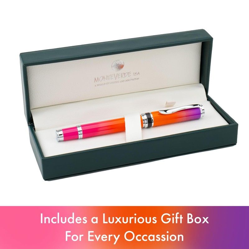 Monteverde USA Innova Ombre Fusion Harmony (Purple/Orange/Pink Gradient Finish) Fountain Pen - Medium Nib, Refillable, Gift Case, Luxury Pen
