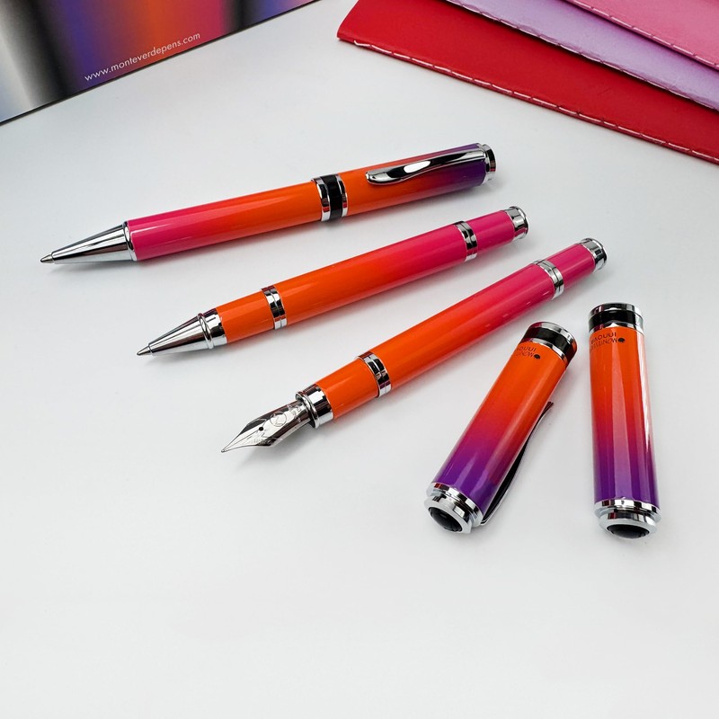 Monteverde USA Innova Ombre Fusion Harmony (Purple/Orange/Pink Gradient Finish) Fountain Pen - Stub Nib, Refillable, Gift Case, Luxury Pen