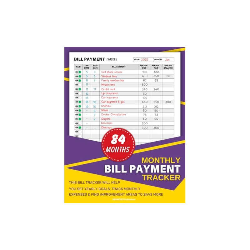 Monthly Bill Payment Tracker: 84 Months or 7 Years of Personal Finance Goal Settings, Recordings, and Management to Maximize Your Savings