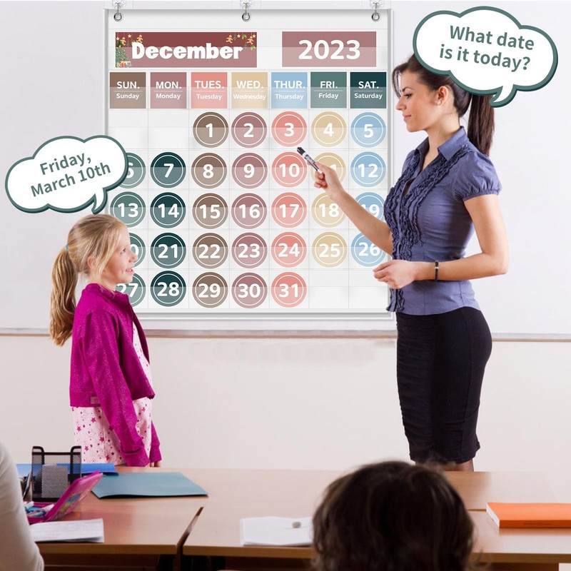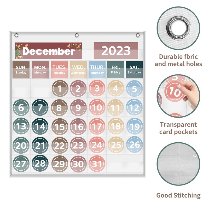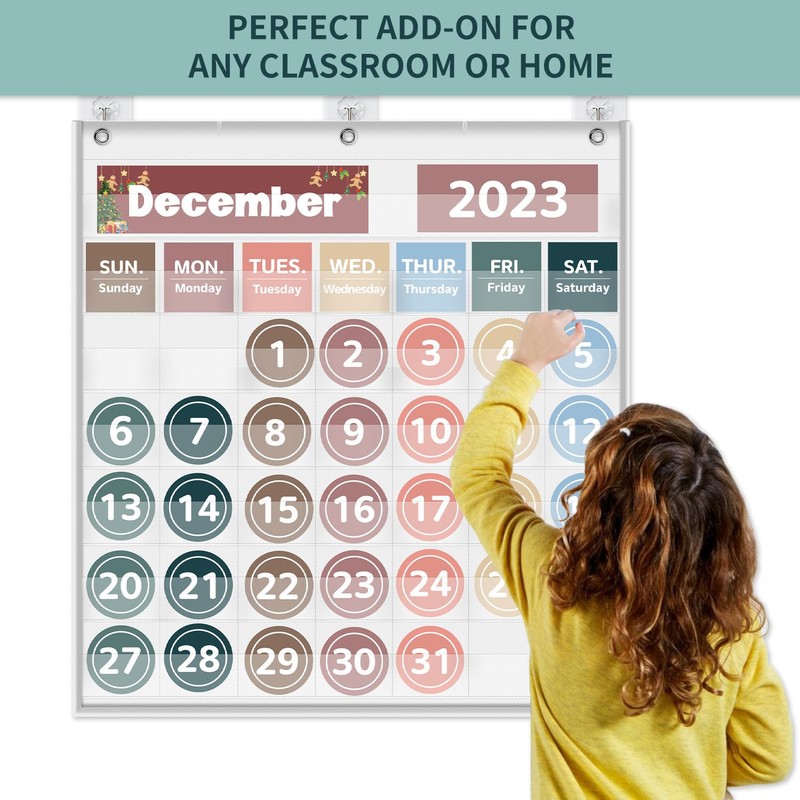 - đăTHIS CLASSROOM CALENDAR FOR ADDS FUN TO INTERACTIVE LEARNINGă-Through this calendar pocket chart student's could learn about the days of week, months, seasons, festival, and some activities. You could also apply the flash cards for basic alphabet or math's learning; Ideal for home and school education need. The pocket chart promotes the development of a variety of skills at home & in elementary classrooms in a fun way! Create an exciting calendar routine for students.