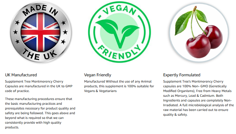 Montmorency Cherry Capsules 3000mg Daily Serving - 90 Vegan Capsules - High Strength Freeze-Dried Cherry Extract - Pure & Potent - UK Manufactured