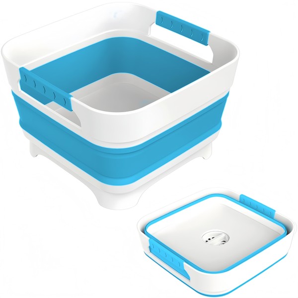 - 【Improved Design】: Our upgraded collapsible dish tub now features rubber-covered handles for a more comfortable grip and increased durability. This collapsible dish drainer is perfect for washing dishes, bowls, vegetables, and pump parts.
