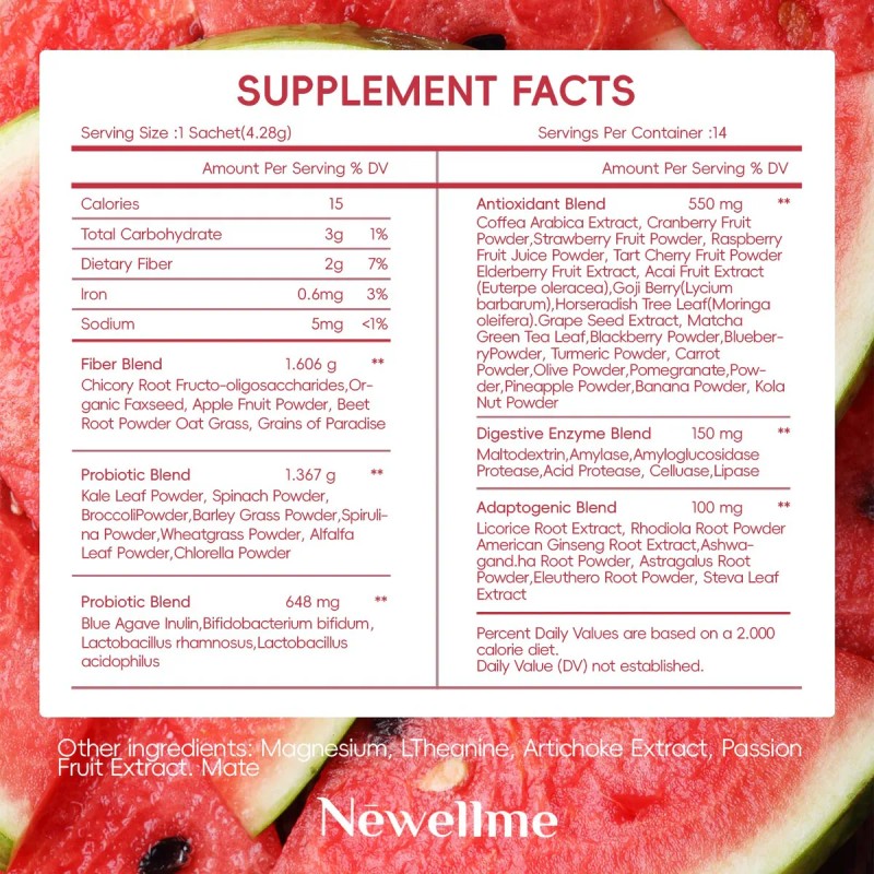• Formato en sobres: Las porciones pre-medidas en sobres son fáciles de disolver en agua, haciéndolo ideal para consumir en cualquier lugar y momento.