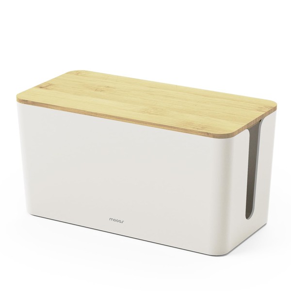 mooas Wood Cover Cable Management Box (Small), Cable Organizer Box for Home Office, Desk Cord Organizer Box to Hide Wires