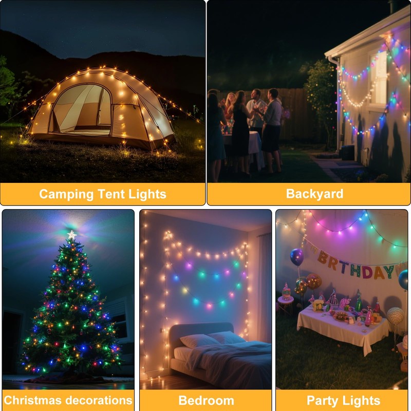 • 【Versatile Application】 Camping lights string have multi-scenario use, suitable for a variety of outdoor and indoor activities, such as camping open-air activities, outdoor parties and gatherings, home patio decorations, temporary lighting solutions, holiday decorations and so on to add romantic atmosphere.