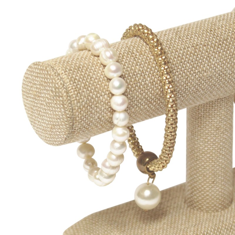This sturdy wooden T-bar has a heavy base that won't tip over even when holding heavy bracelets.