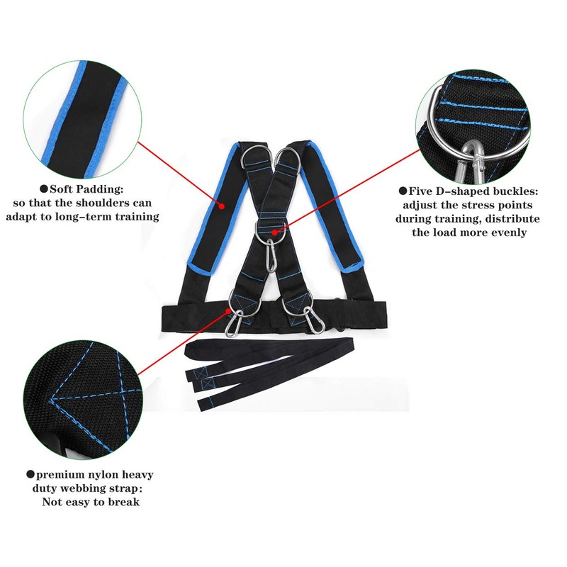- ✔【100% quality guarantee and customer satisfied】:If you have question about this sled harness, we’d love to help you at any time. Package with 1pc resistance speed traing sled harness, 1pc Y shape pull strap, 3pcs durable hooks.