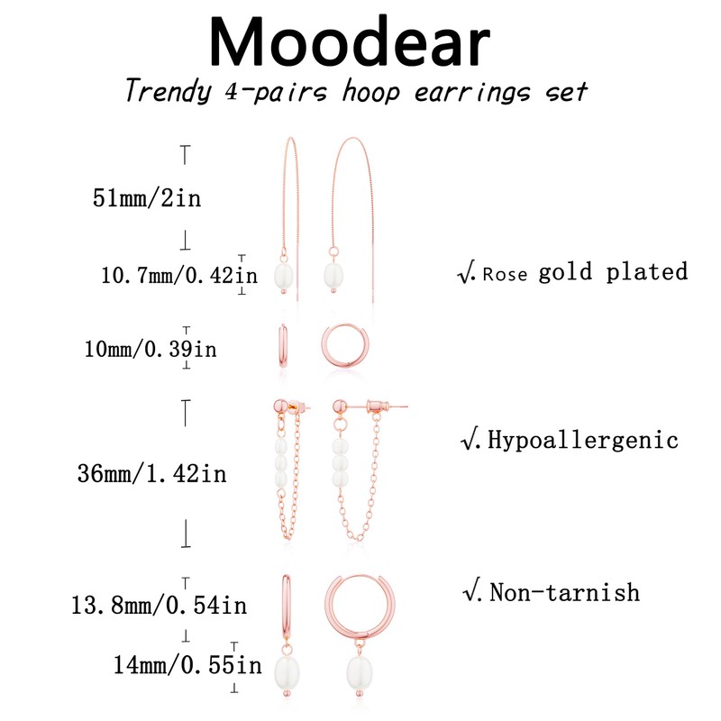 - 🏷Moodear Jewelry: Our rose gold with pearl drop Earrings Set is an elegant and classic piece of jewelry, perfect for any occasion; Elevate your style with this timeless accessory today