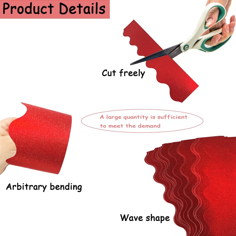 - 【MOODKEY Package】: You will get 30pcs 0.33m red color glitter scalloped border trim, 3inch in width, total 9.9m, ample quantity to meet your decorative needs.