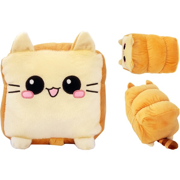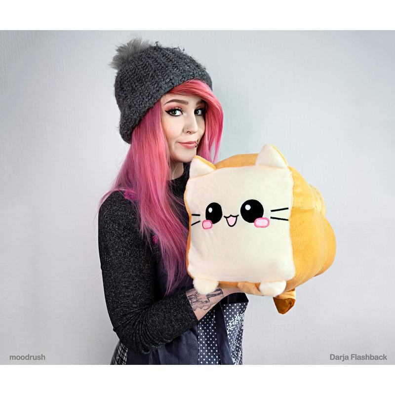 moodrush® Toast Cat / Bread Cat Plush Cushion | Cuddly Toy | All Elements Embroidered (Not Printed!) | Washable | White Bread Kitty | Approx. 37 x 27 cm