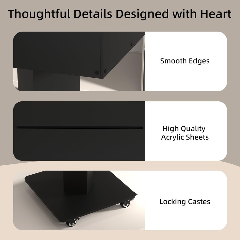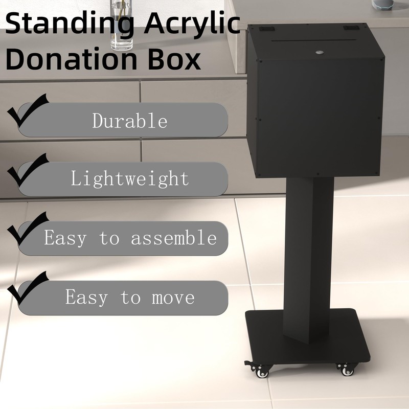 MOOFI Suggestion Box with Lock, Acrylic Ballot Box with Locking Casters, Floor Standing Donation Box for Charity, Voting, Church & Event Fundraising, 13.78"x13.78"x13.78", Black