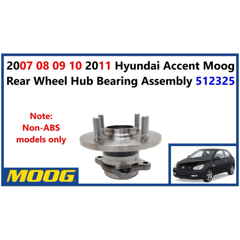 MOOG 2007 08 09 10 2011 Hyundai Accent Moog Rear Wheel Hub Bearing Assembly 512325