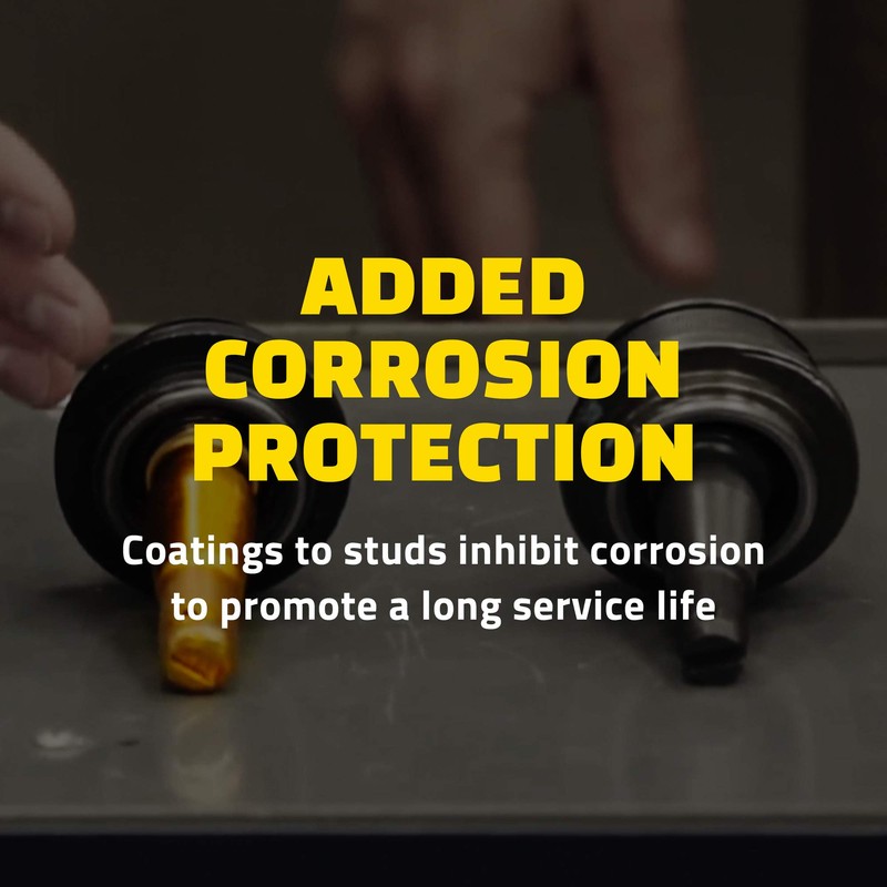 - ADDED CORROSION PROTECTION -- Coated studs and e-coated cast iron and steel control arms inhibit premature deterioration
