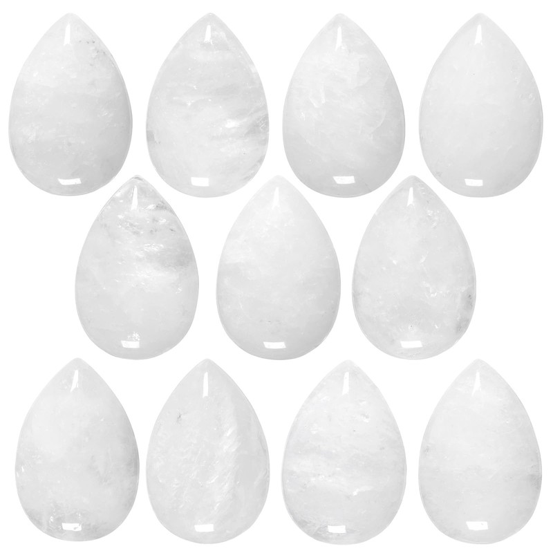 mookaitedecor 5pcs 20x30mm Natural Clear Quartz Crystal Cabochons for Jewellery Making Crafting, Cabochons Flat Back Water Drop Beads Teardrop Beads Natural Stone Beads Healing Crystal Beads