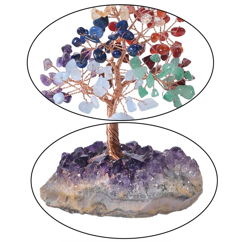 - Healing Crystal Tree: The branches are made of 7 Chakra Crystal Chip Stones, which would release energy, and focus energies in positive ways and help heal your mind and spirit. Besides, you can put this around when you do yoga or meditation, so it can provide a cozy and peaceful environment in your area, as well as enhance the effects of healing.