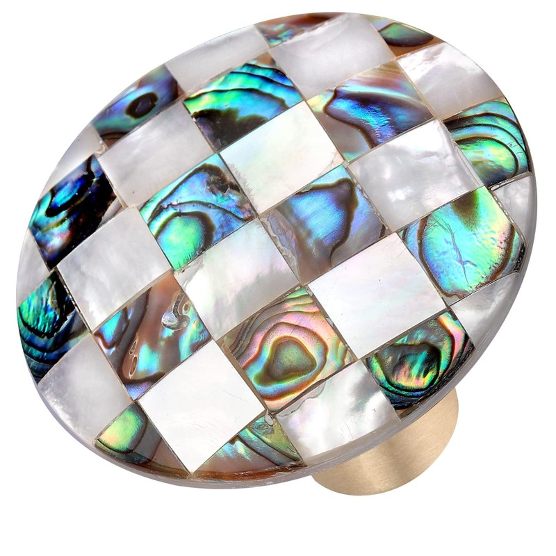 - Abalone Cabinet Knobs: The crystal knobs are made of unique White Shell and Abalone Shell, with brass handle and stainless steel screws, the natural color makes the knobs and your furniture stunning and unique. When the light hit the abalone knobs, they will reflect gorgeous and color. Please note that Abalone shells are created by nature, please expect unique variations in patterns, colors, and sizes from the images.
