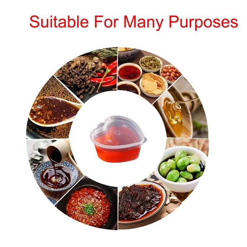 Mookblank 50PCS 1oz Plastic Condiment Cups with Lids,Leak-Proof Portion Cups, Mini Disposable Containers for Sauces, Salad Dressings, Tomato sauce, Snacks, Jello Shot,Food Sample (Heart)