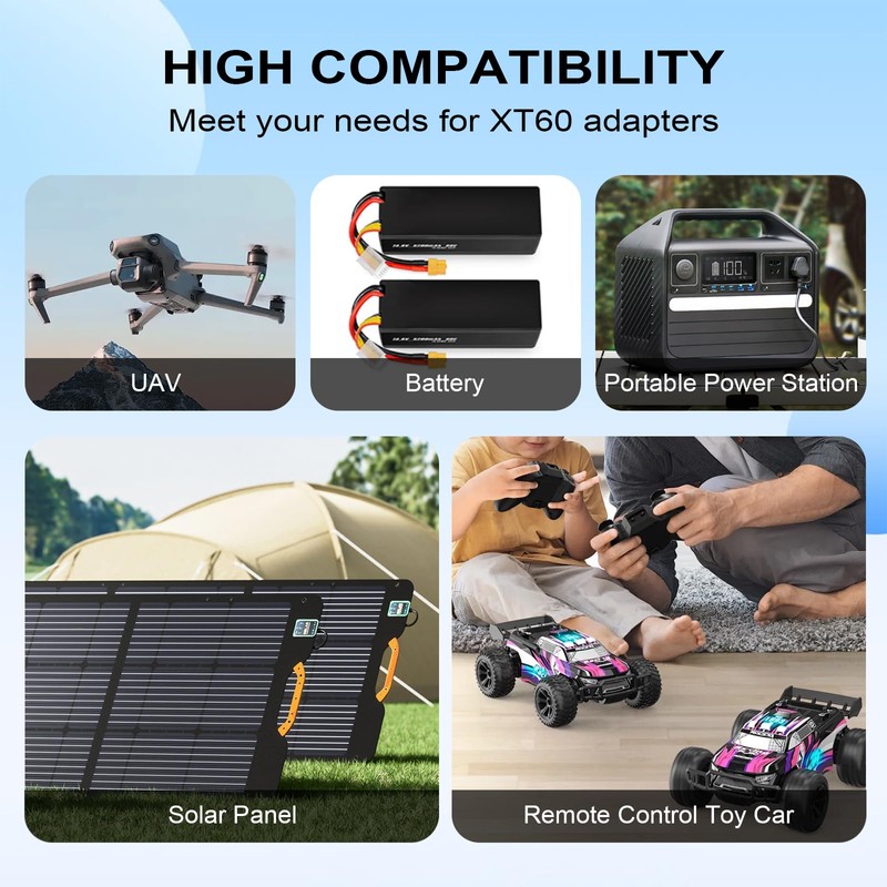 - Include 4PCS XT60 female cable and 4PCS XT60 male cable,150mm length,12AWG wire