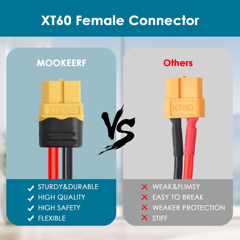 - 【High-Efficiency Charging Cable】This xt60 solar cable use 12AWG tinned copper wire with high quality PVC nylon material (Heat resistant to 105℃).Tinned copper has low resistance,antioxidant and anti-corrosion which ensures good electrical conductivity and good durability,providing stable current for your device.