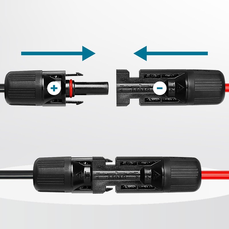 - 【Waterproof & Dustproof】 Solar connectors have waterproof and dustproof performance to prevent corrosion,increasing the feasibility of the solar panel extension cable to be used in harsh environment.